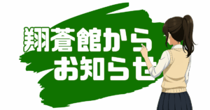 初めまして。オンライン塾「翔蒼館」開校いたしました。「なりたい自分に一直線!」を合言葉に、未来を目指す子供たちを全力でサポートします。資料請求・オンライン無料相談お待ちしております。これからよろしくお願いいたします。